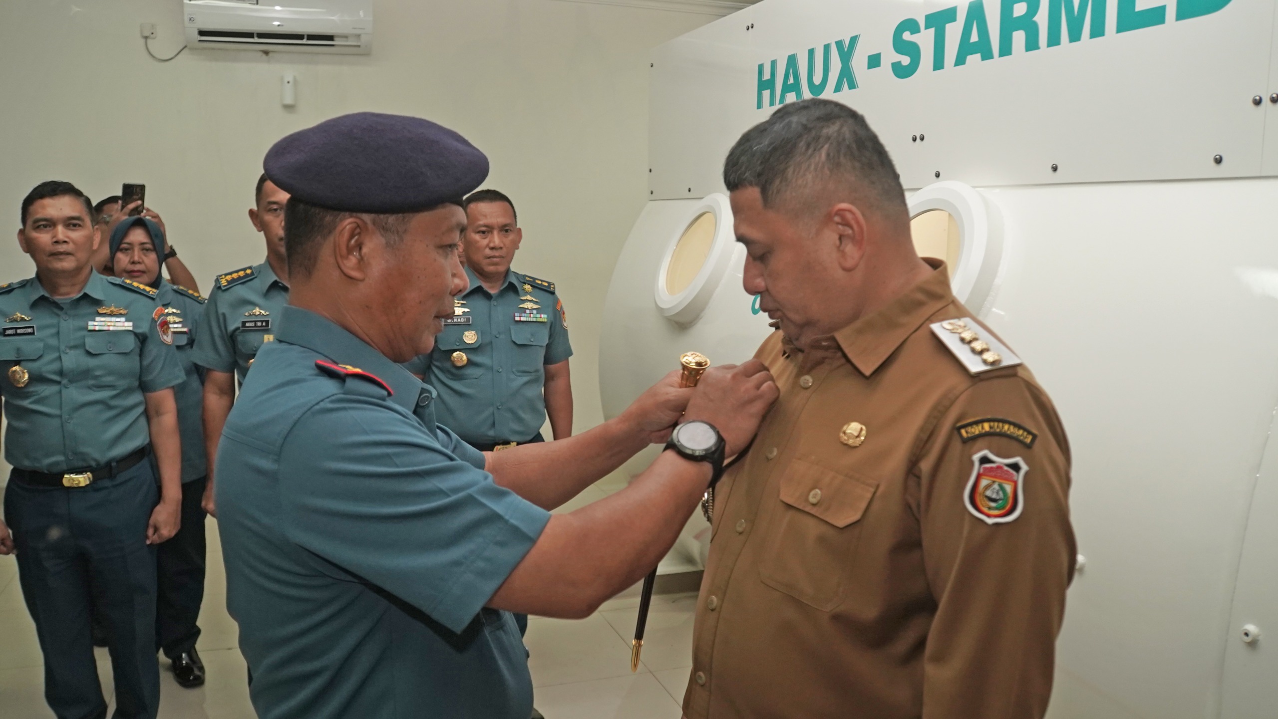 Komandan Kodaeral VI Sematkan Brevet Kehormatan Kesehatan Penyelaman dan Hiperbarik dari TNI AL Ke Walikota Makassar