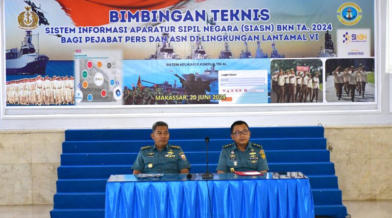 Read MoreTNI AL, Lantamal VI, 20 Juni 2024. Makassar, Seluruh Personel Aparatur Sipil Negara (ASN) Lantamal VI Makassar mengikuti Bimbingan Teknis