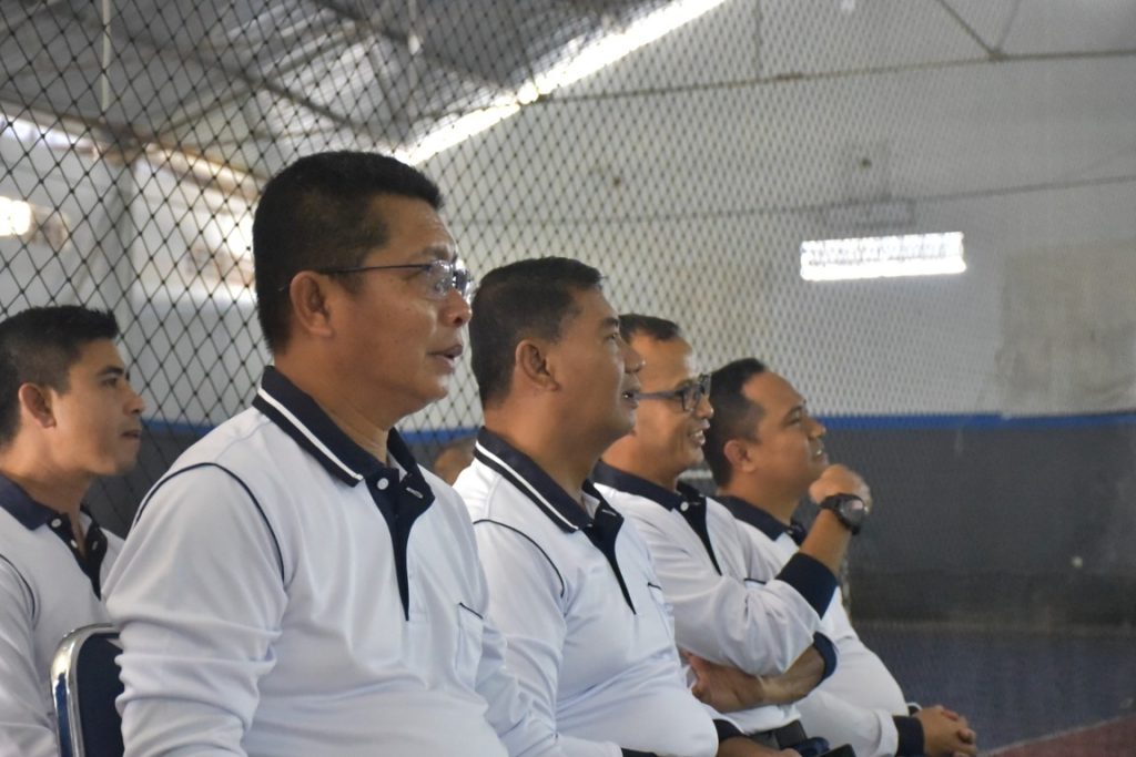 Makassar, Komandan Komando Daerah Angkatan Laut (Kodaeral) VI Laksamana Muda TNI Andi Abdul Aziz, S.H., M.M Menyaksikan Pertandingan Final Cabang Olahraga (Cabor) Beregu PA/PI Badminton Antar Satker Kodaeral VI Dalam Rangka Menyambut Hari Armada RI Tahun 2025 Bertempat di Gedung Olahraga (GOR) Chandrasa Kodaeral VI, Selasa (25/11/2025).