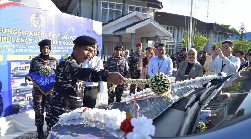 Makassar, Komandan Komando Daerah TNI AL (Kodaeral) VI Laksamana Muda TNI Andi Abdul Aziz, S.H., M.M Meresmikan Hasil Restorasi Interior Ransus Fastlab PCR Mobile Menjadi Ambulance VIP Diskes Kodaeral VI di Lapangan Arafuru Mako Kodaeral VI, Selasa (30/09/2025).