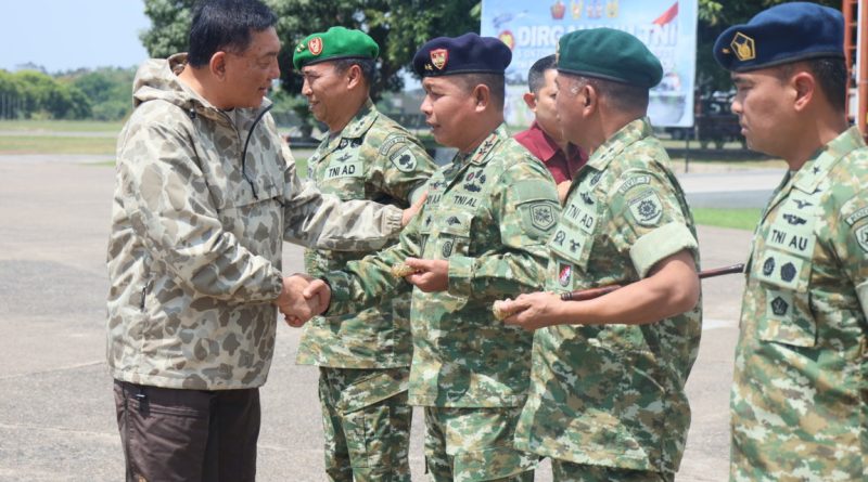 Dengan menggunakan Pakaian Dinas Lapangan TNI Corak terbaru (Sage Green) Dankodaeral VI tampak gagah turut menyambut kedatangan Menteri Pertahanan RI beserta rombongan.