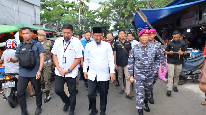 TNI AL, Lantamal VI, 21 Maret 2023, Komandan Lantamal VI (Danlantamal VI) Makassar Brigjen TNI (Mar) Amir Kasman, S.E., M.M., bersama Gubernur Sulawesi Selatan Andi Sudirman Sulaiman, T., meninjau pasar Terong kota Makassar, Jumat (24/03/2023)
