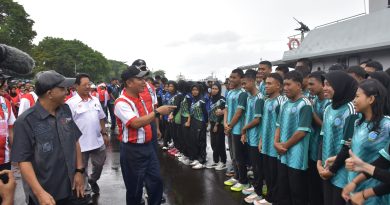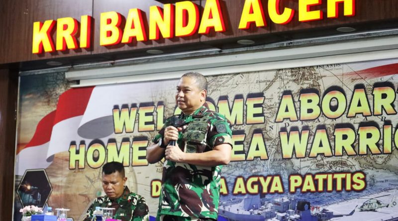 Makassar, Komandan Lantamal VI (Danlantamal) VI Makassar Brigadir Jenderal TNI (Mar) Dr. Wahyudi, S.E., M.Tr. Hanla, M.M., M.Han., bersama Komandan Pasmar 2 Brigadir Jenderal TNI (Mar) Nanang Saefulloh, S.E., MM., Mengunjungi Kapal Perang Republik Indonesia (KRI) Banda Aceh-593. Pada kesempatan ini Danlantamal VI Memberikan Pengarahan, Motivasi Kepada Ratusan Prajurit Marinir bertempat di Geladak Helly KRI Banda Aceh-593 di Dermaga Baru Lantamal VI. Senin, (19/05/2025).
