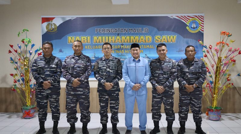 TNI AL, Lantamal VI, 18 Oktober 2023, Keluarga besar Mako Lantamal VI menggelar peringatan Maulid Nabi Muhammad SAW Tahun 1445 H/2023 M Tema Maulid kali ini adalah ‘’Menebar empati, Memperkuat silaturahim dan bertekad menjadi teladan’’ bertempat di Gedung PP Jaladri Lantamal VI, Rabu (18/10/2023).