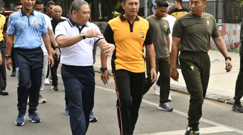 Makassar, Komandan Lantamal VI Makassar (Danlantamal VI) Brigadir Jenderal TNI (Mar) Dr. Wahyudi, S.E., M.Tr.Hanla., M.M., M.Han bersama Para pejabat Forkopimda Sulsel menghadiri olahraga bersama dalam rangka Hari Bayangkara ke-79 Tahun 2025 bertempat di Lapangan Karebosi Kota Makassar, Jum’at (20/06/2025).