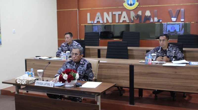 Danlantamal VI Makassar Ikuti Paparan Kegiatan Kunker Kasal ke Sorong, Kupang dan Makassar melalui Vicon