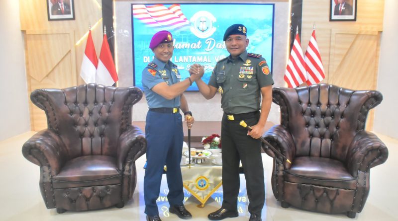 Makassar, Komandan Lantamal VI (Danlantamal VI) Makassar Brigadir Jenderal TNI (Mar) Andi Rahmat M, menerima kunjungan kehormatan Panglima Divisi Infanteri (Pangdivif) 3 Kostrad Mayor Jenderal TNI Bangun Nawoko, S.I.P., bertempat di ruang Macan Kumbang Mako Lantamal VI, Senin (10/06/2024).