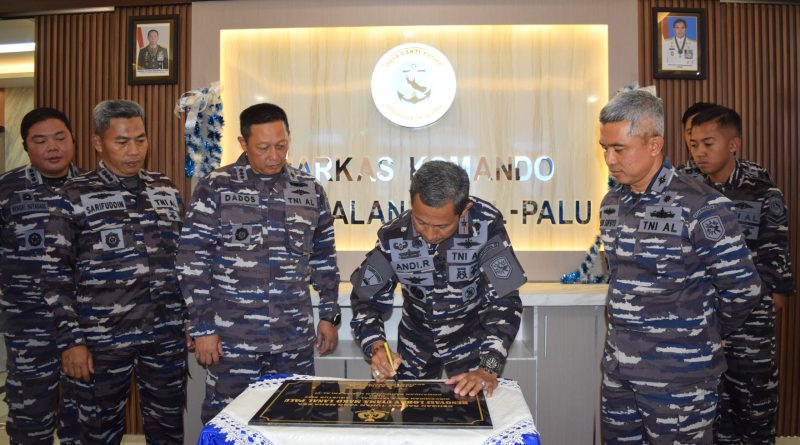 Peresmian tersebut ditandai dengan Sambutan Danlantamal VI sekaligus penandatanganan prasasti peresmian ruang Lobi Mako Lanal Palu.