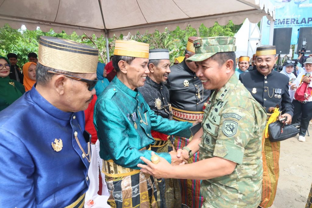 Selayar, Dalam rangka mendukung Program Strategis Nasional, Khususnya Program Hilirisasi Komoditi Unggulan, Komandan Komando Daerah TNI Angkatan Laut VI (Dankodaeral VI) Laksamana Muda TNI Andi Abdul Aziz, S.H., M.M mendampingi Menteri Pertanian Republik Indonesia (Mentan RI) Bapak Dr.Ir.H.Amran Sulaiman. MP. melaksanakan Lounching Gemerlap (Gerakan Menanam Lima Juta Kelapa) di Desa Mekar Indah Kec. Buki Kab. Kepulauan Selayar Propinsi Sulawesi Selatan , Sabtu (15/11/2025).