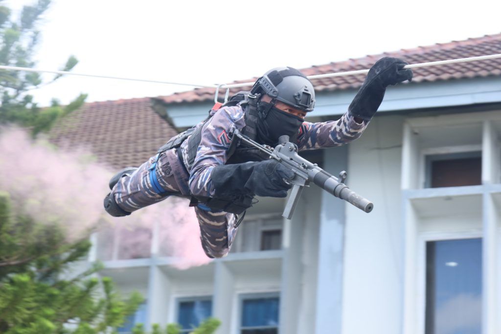 Ledakan dahsyat yang meruntuhkan sarang persembunyian musuh menjadi klimaks yang memukau para undangan, menegaskan kecepatan, ketepatan, dan keberanian pasukan dalam menghadapi ancaman nyata.