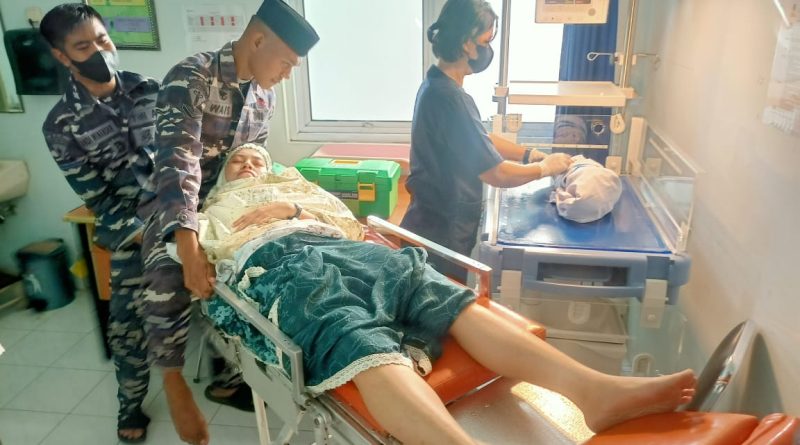 TNI AL, Lantamal VI, 22 April 2023, Dinas Kesehatan Lantamal VI sigap membantu Seorang ibu yang merupakan salah satu jamaah Sholat Idul Fitri 1444 H/2023 M melahirkan usai pelaksanaan sholat idul fitri yang bertempat di Lapangan Arafuru Mako Lantamal VI Makassar, Sabtu (22/04/2023).