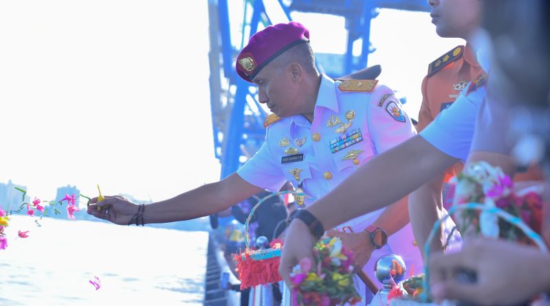 Dalam Memperingati Hari Bhayangkara ke -78 tahun 2024, Komandan Lantamal VI (Danlantamal VI) Brigjen TNI (Mar) Andi Rahmat M. Mengikuti tabur bunga dengan tema “Polri Presisi Mendukung Percepatan Ekonomi Yang Inklusif Dan Berkelanjutan Menuju Indonesia Emas” bertempat di Dermaga Peti Kemas Soekarno Hatta Selatan Makassar. Senin (24/06/2024).