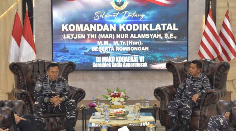 Makassar, Dalam upaya memperkuat sinergi antara satuan operasional dan lembaga pendidikan di lingkungan TNI Angkatan LautKomandan Kodaeral VI Laksamana Muda TNI Andi Abdul Aziz, S.H., M.M.,menerimaCourtesy Call (CC) dari Komandan Komando Pembinaan Doktrin, Pendidikan dan Latihan TNI AL (Kodiklatal) Letnan Jenderal (Letjen) TNI (Mar) Nur Alamsyah, S.E., M.M., M.Tr.(Han).bertempat diLongroom Macan Kumbang Mako Kodaeral VI, Jumat (29/08/2025).