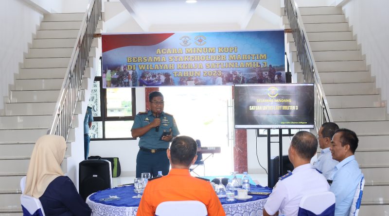 “ Mengingat cakupan bidang kerja unsur – unsur maritim yang sangat luas dan kompleks, sehingga dibutuhkan koordinasi dengn intensitas yang tinggi, baik secara formal maupun non formal guna tercapainya sinergitas sesama pemangku kepentingan maritim dan tercapainya kerja sama yang baik antar unsur maritim” Ujar Dansatlinlamil 3.